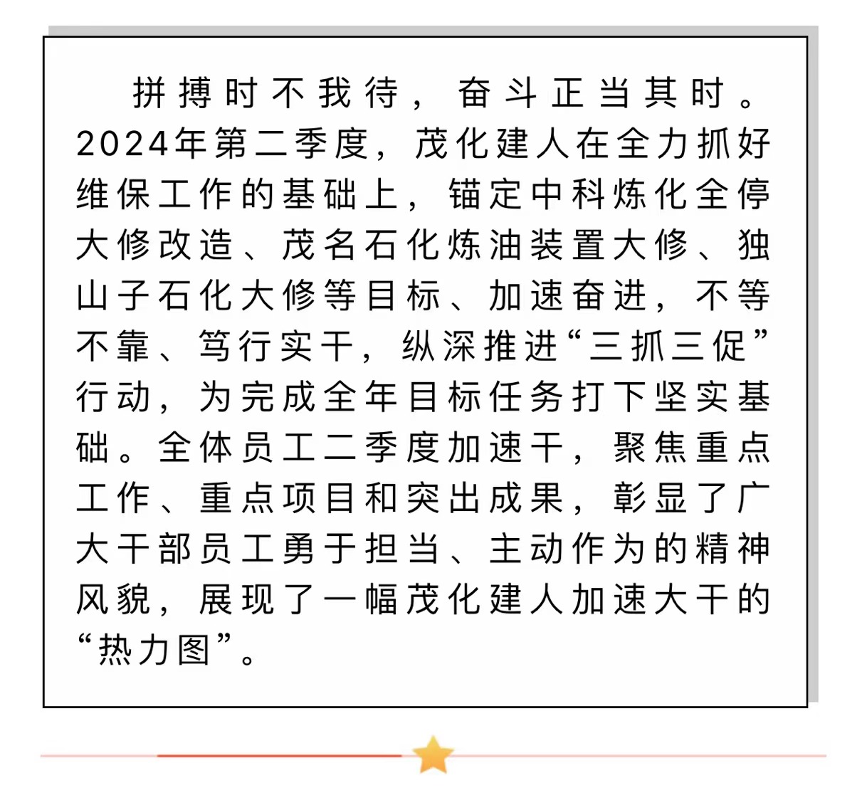 二季度(dù) 加速幹丨(shù)一起來看(kan)茂化建人(rén)“熱力圖”