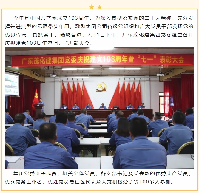 廣東茂(mao)化建集團(tuán)黨委召開(kai)慶祝中國(guo)共産黨成(chéng)立103周🙇🏻年暨(ji)“七一”表彰(zhāng)大會