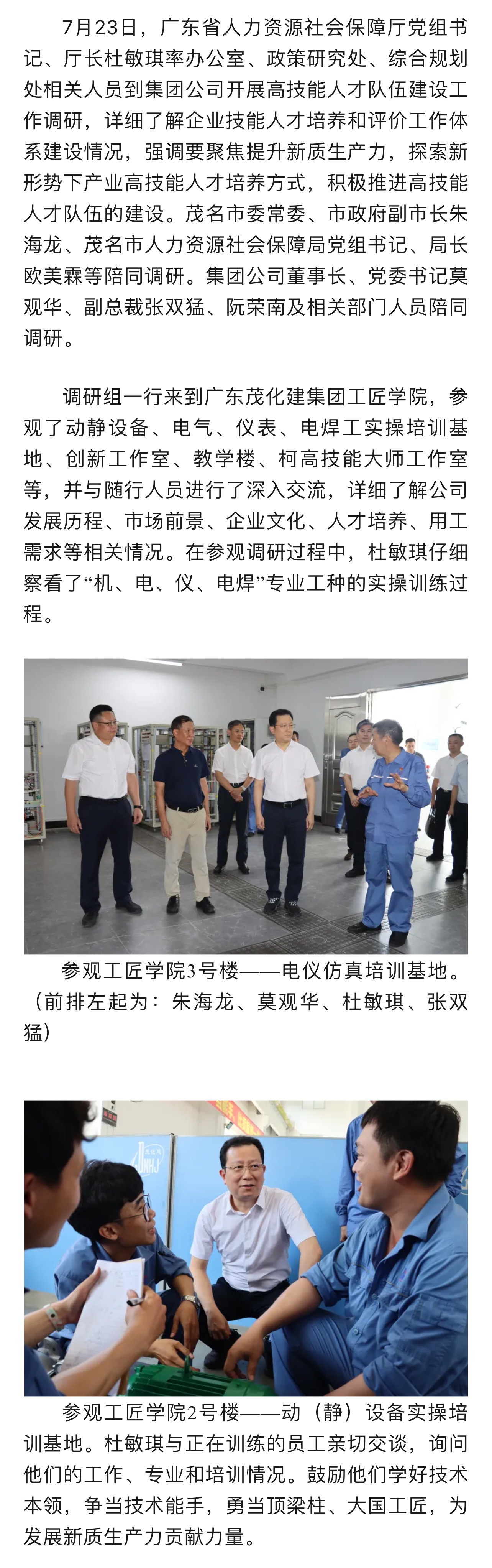 廣東(dong)省人社(shè)廳到集(jí)團公司(si)調研高(gāo)技能人(ren)才隊伍(wu)建設工(gong)作