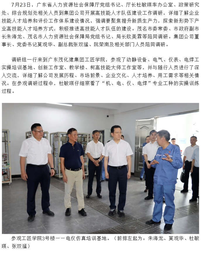 廣東省人社(shè)廳到集團公(gōng)司調研高技(ji)能人才隊伍(wǔ)建設工🤩作